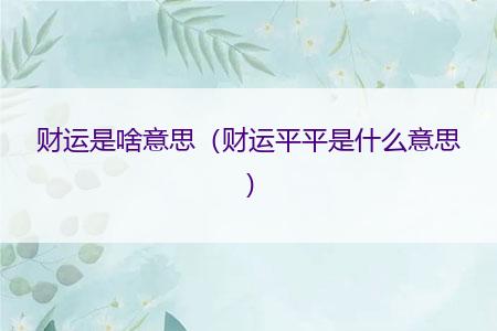 ▶ 财运是啥意思(财运平平是什么意思)