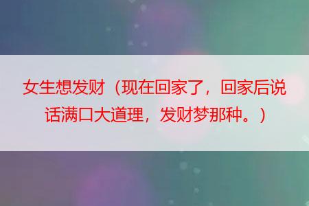 ▶ 女生想发财(现在回家了,回家后说话满口大道理,发财梦那种。)