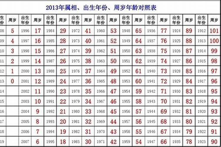 2023年十二生肖对照表年龄